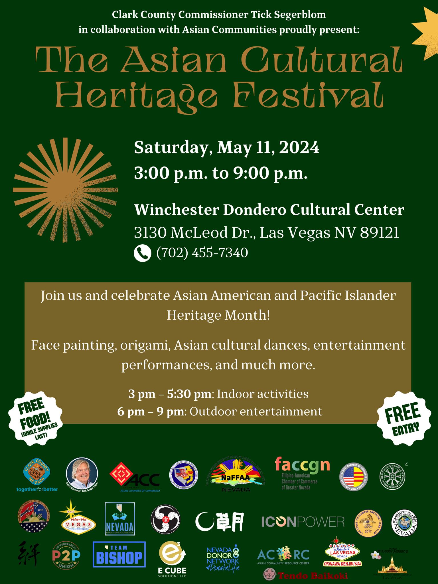 Please come and join the fun as we celebrate Asian Heritage month on May 11th from 3-9pm, organized by Clark County Commissioner Tick Segerblom.